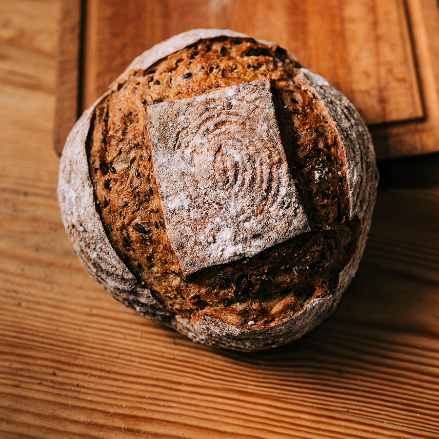 Made with soaked linseed, toasted sesame and toasted sunflower seeds. The seeds keep the loaf moist and tasty. Makes great toast. Suitable for vegans and vegetarians.